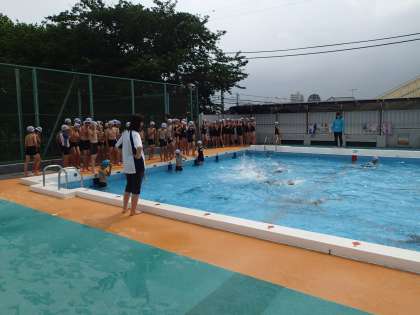 その後、早速泳いで、水の感触を楽しんでいました。6年生は水泳記録会が2学期にあります。納得いく泳ぎができるようになるといいですね。