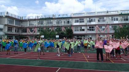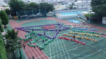 今日は創立134周年を記念して、航空写真と全員の集合写真を撮りました。子どもたちが考えた模様にみんなが並び、セスナが4回ほど撮影していきました。ちょっと暑い日でしたが、みんなよく頑張りました。写真が楽しみですね。