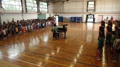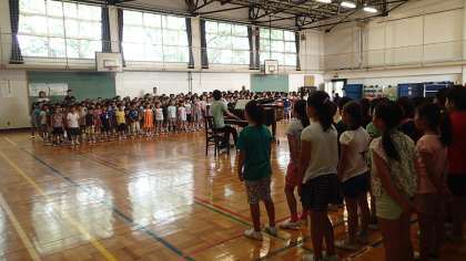 今朝は音楽朝会でした。二重唱のエールの歌声が体育館に響き渡りました。