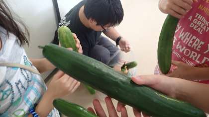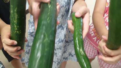 今年は緑のカーテンのところに大量のキュウリがなりました。ちょっと目を離すと太くなりすぎておいしくなくなってしまいます。