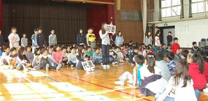 15日(火)の児童集会は、各委員会の紹介です。5年生は今年度から初めて経験する活動で、やる気満々!6年生は、昨年度できなかったことにチャレンジ!委員長さんを中心にして、各委員会とも当番活動や、自分たちで考え創意工夫した活動を、わかりやすくしっかりと発表できました。5・6年生はけっこう自分のことで忙しくて大変なのですが、そのなかでもやる気を見せてがんばる子どもたちを、しっかり支えてやりたいと思っています。