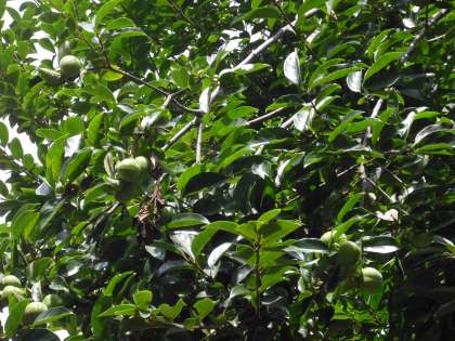 正門を入って左に柿の木があります。今年は、柿の実が沢山付き枝がたれています。まだ青い実が落ちるので剪定をしました。
