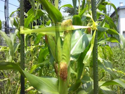 トウモロコシの実がしっかり生長しています。このまま実のってほしいと思います。