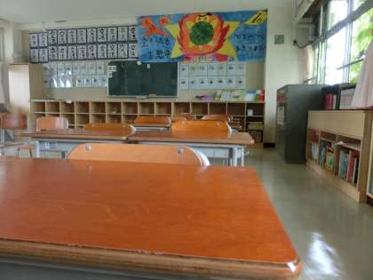 【写真下】2学期に向けての準備が進んでいます。床もピカピカですよ。