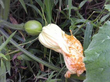 八幡ファ−ムに植えたかぼちゃの苗はすくすく育ち直径15センチ位の実ができました。昇降口に飾ってあります。現在も実が付いています。何処まで大きく成るか楽しみです。雑草に囲まれているので新学期には周りを綺麗にします。