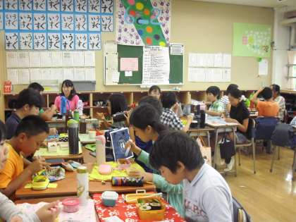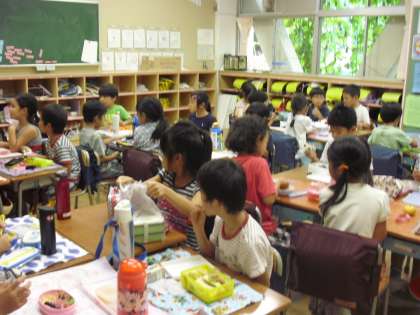 今日から午後の授業があります。お弁当を嬉しそうに食べている子どもたちを見ると、家庭で手作りされたお弁当に感謝します。夏休みにお弁当づくりに取り組んだ子どもたちですから、高学年では、自分で作ってきた児童が数名いました。10月11日まで続きますがご協力お願いいたします。