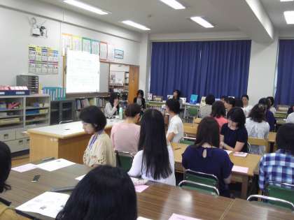PTA主催の研修会が図書室で行われています。テーマ「子どもの自主性を育てるために」スクールカウンセラーによる講演です。本校の相談室の様子から始まり家での声のかけ方等々充実した研修会です。