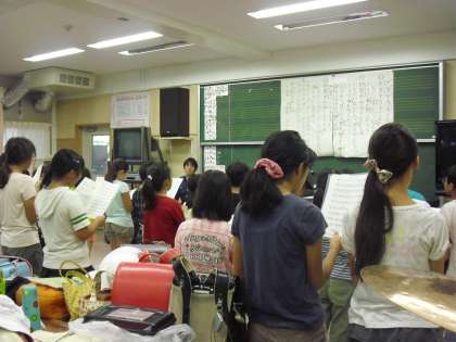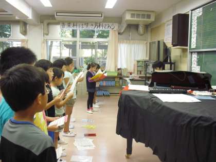 2学期も合唱団の朝練習が10日から始まりました。3年から6年生までの希望者約40名の児童が音楽室で合唱の練習に励んでいます。新しい曲に取り組んでいました。
