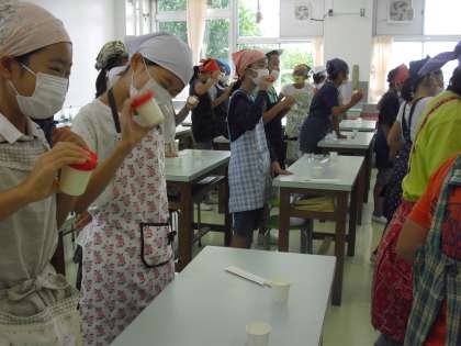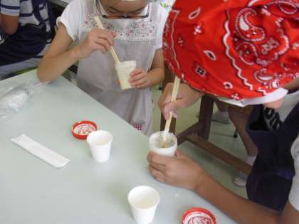 今日は6年生がバターを作りました。生クリームから作るやり方。みんな楽しそうにフリフリ!美味しいバターを試食していました。