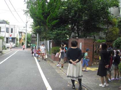 代表委員会が呼びかけたユニセフ募金。正門のところで行っています。代表委員の児童が協力して、登校する児童に声をかけています。