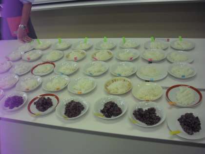 子どもたちは、お米の食べ比べに真剣に取り組んでいました。古代米には、特に興味を示していました。