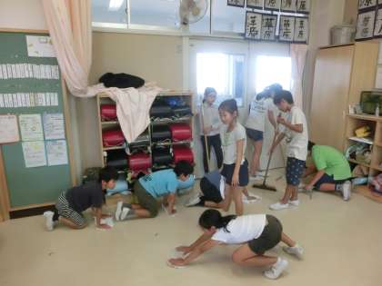 いつもと違う教室を掃除するので、とても楽しそうに活動している子どもたちの