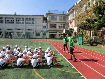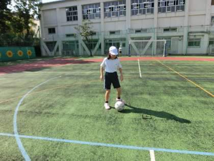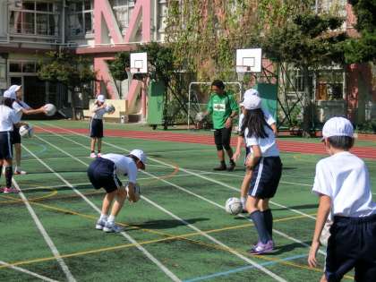 今日は東京ヴェルディの方を招いてサッカー教室を行いました。