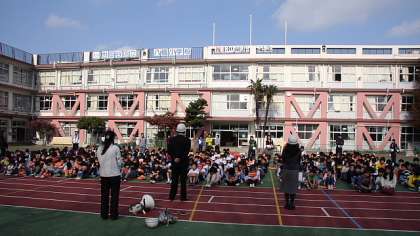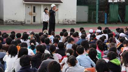 10日(木)、11時15分から予告なしの避難訓練を行いました。今日の想定は近隣の家で火事がおこり、万が一に備えての避難です。予告をしていませんでしたから、びっくりした子もいたようですが、子どもたちは担任の誘導で整然と避難し、短時間で校庭に整列しました。人数確認後体育座りをして学校長の話を聞く態度も立派でした。