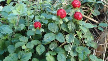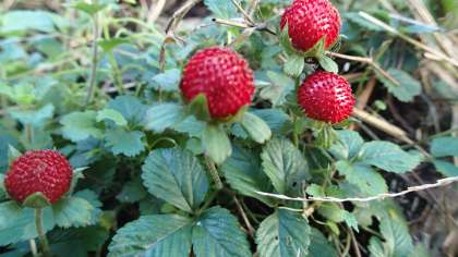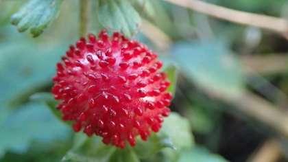 八幡ファームにある雑草の一つ、ヘビイチゴ。これの実がなりました。真っ赤でとても美味しそう。果たして食べられるのでしょうか?
