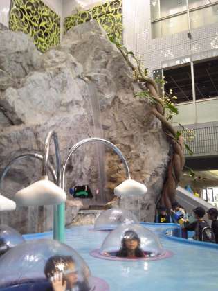 一階アクアパークです。空から雨が降ってくる水を体験できます。