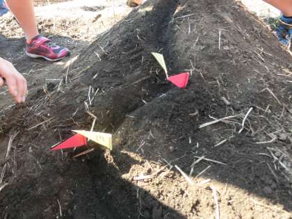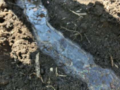 今回の実験は、八幡ファームに土の山を作り、実際に水を流して