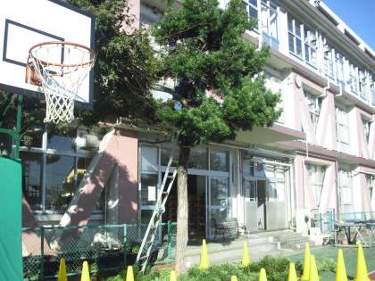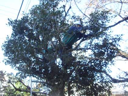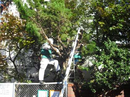 校舎周りの樹木の剪定を行っています。マキ,カイヅカイブキ、もちの木等床屋さんのようにきれいに進めています。樹木が気持ちよさそうです。