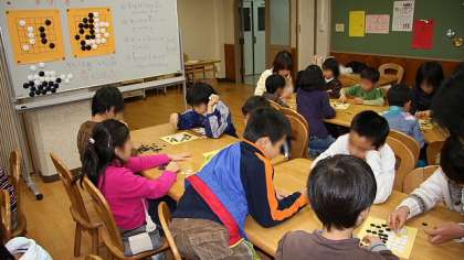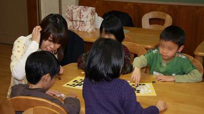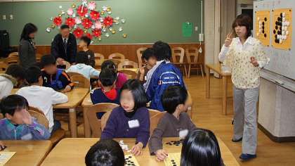12月15日(火)、先週紹介したBOP囲碁教室が放課後ランチルームで行われました。この日も、講師として本校卒業生のプロ女流棋士、万波佳奈さんにおいでいただきました。「子どもたちに万波さんはどれくらいすごいか知っている?」とたずねてみたところ、「わからない」と言うので、「サッカー選手でいえば、Jリーグのトップ選手ぐらいの人なんだよ」と教えたところ、びっくりしていました。本当にわかりやすく親切な指導で、八幡小学校はすばらしい先輩をもっていて幸せだなと思いました。