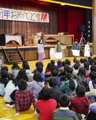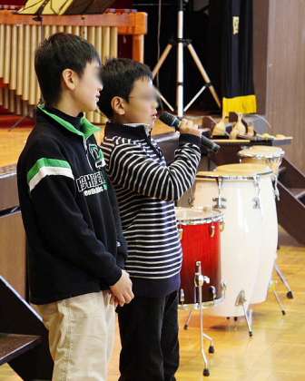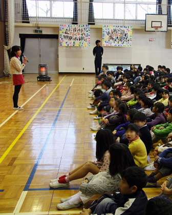20日の八幡小学校創立記念日を控えた18日(金)、朝8時30分から130周年記念集会を体育館で行いました。朝早い時間でしたが、保護者や地域の方にもいらしていただき、2人の代表委員の司会ではじめの言葉からスタートしました。続いて、代表委員が一生懸命考えた「八幡の歴史クイズ」をしました。