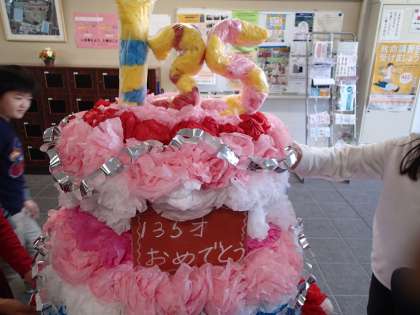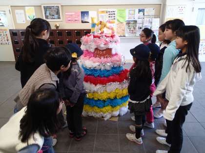 八幡小学校は明治12年12月20日に奥沢神社に児童数30名で開校しました。それから135年。昨日、あるクラスがお祝いとしてケーキを作ってくれました。とても華やかで、子どもたちもお気に入りの作品になりました。