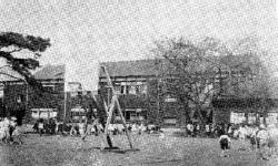 昭和7年. 4. 1日に、荏原郡の東京市編入により、「東京市八幡尋常小学校」と改称されました。昭和5年当時の校舎や校庭の様子です。