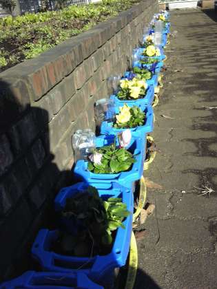 八幡ファームに昨年末に植えたパンジーが可愛いらしく咲いています。紫色、白色、黄色などです。冬の畑を飾ってくれます。