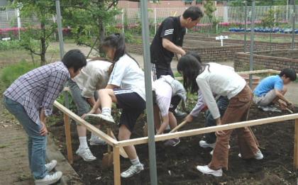 5月1日(木)放課後、森守プロジェクトは、明日の種まきを前に「環境委員会」の子どもたちと一緒に畑の整備をしました。はえている雑草を引き抜き、スコップやクワで土をおこし、素手で草の根っこや石を取り除いて整地しました。終わった頃にはみんなの額には汗が!