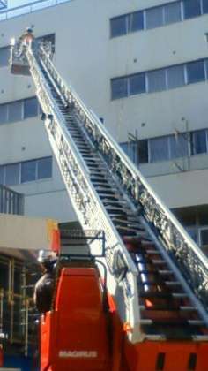 梯子車で救助する様子も見せてくださいました。途中、消防車と救急車が出動する場面もありました。お忙しい中、本当にありがとうございました。