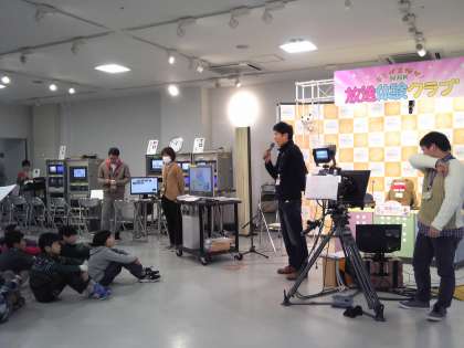スタジオのスタッフの紹介や機械の説明を聞いて準備しています。