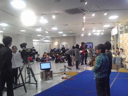 模擬番組台本に従って役割分担して番組作りを体験しました。