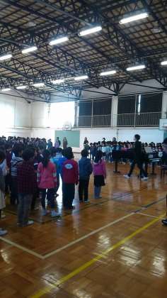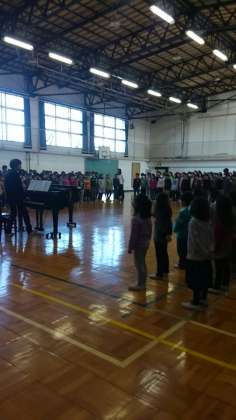 毎月全校で気持ちを合わせ歌っています。今日は、ベストフレンドです。六年生を送る会で歌う曲でもあります。