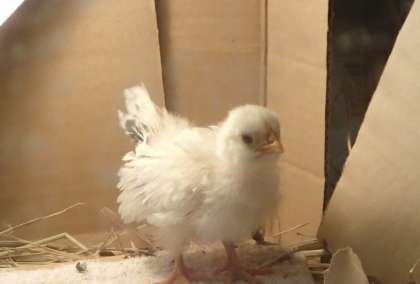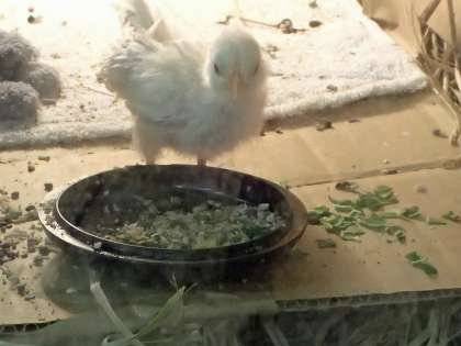 ヒヨコはもうヒヨコとは言えない大きさになってきました。尻尾にはカツラチャボの特徴である黒い羽が見えてきました。ジャンプ力も強くなり、動きも素早くなりました。あと1ヶ月ほどで飼育小屋デビューができるのではないかと思います。