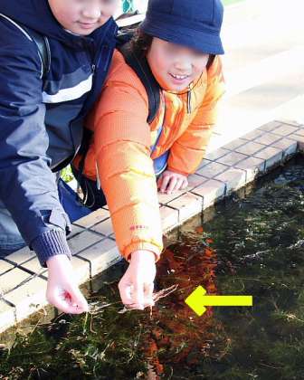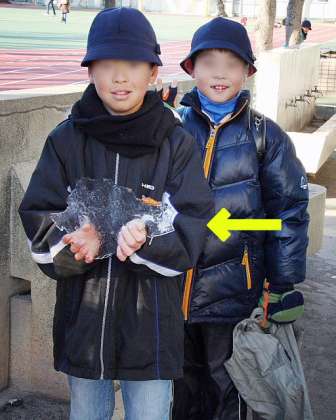 さっそく池の氷をわって見せに来てくれた子どもたちです。「とっても手が冷たいよ」と言いながら、その後大事そうにその氷を池に戻しに行きました。その言葉、その様子に、すてきな感性を感じさせてくれました。