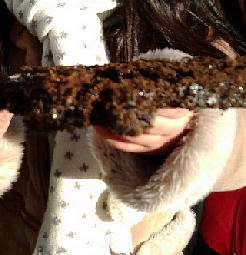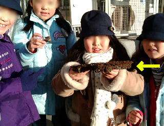 15日朝も昨日と同じように冷え込みました。暖冬と言われていたのにどうしたことでしょう?今日も子どもたちが寒い朝ならではの物を探してきてくれました。りっぱな霜柱です。土の間の氷の結晶がキラキラときれいでした。「自分が小さくなってこの間を歩いてみたらきれいだろうね。」という会話。子どもならではの発想ですね。
