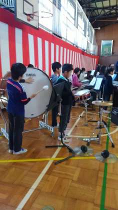 5年生6年生の卒業式合同練習が始まりました。今日は入場と退場の練習を中心に取り組みました。