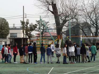 終わってから、校庭で自分たちの技を保護者の皆さんに見ていただきました。大縄跳び、上手になりましたよ。