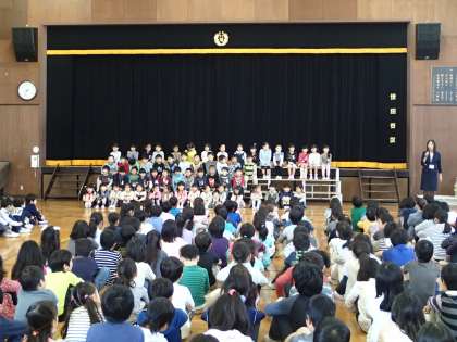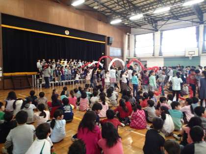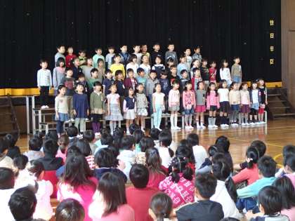 また一年生も立派なコールで在校生にお礼をしました。これからは一年生も八幡の仲間。朝会や集会にも参加します。楽しみにしていて下さい。