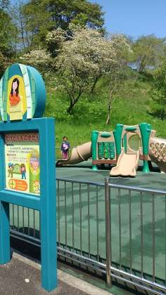 早くもまわってきたグループは遊具で遊んでいます。初めてのオリエンテーリングなので速くまわったそうです。