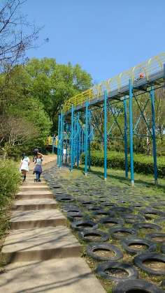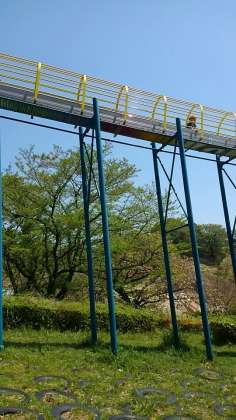 長い滑り台に挑戦です。他の学校も来ています。だんだん混んで来ました。