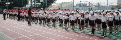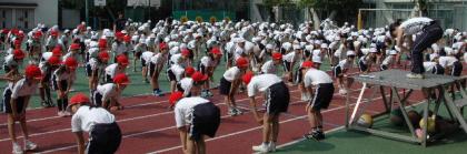 16日(金)の体育朝会は全校児童が校庭に集まり、おわりの体操の練習をしました。おわりの体操はストレッチ運動です。音楽が放送でうまく流れないというハプニングがありましたが、体育主任の「1・2・3・4・・・」という声に合わせて、子どもたちは動じることなく真剣に練習できました。立派です。