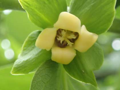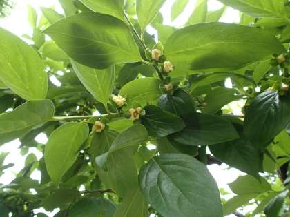 八幡の自転車置き場の近くに渋柿があります。今年は剪定したのでたくさんの花が咲きました。これが、柿のヘタの部分とそっくり。自転車を置きに来られたとき、ちょっと上を見てみませんか。
