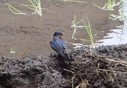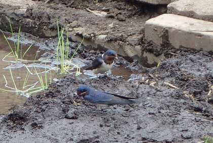 普通は水を飲むのさえ飛びながら飲むとさえ言われるのですが、ここのツバメたちは安心して地上に降りて作業しています。
