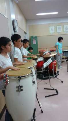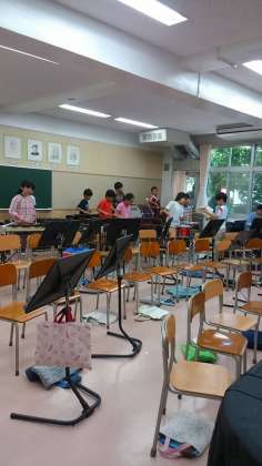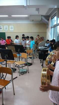 音楽授業から楽器演奏が聞こえきたので見に行くと、6年生が合奏をしていました。全員で演奏していたので迫力が有りました。