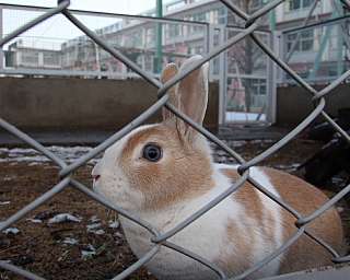 2日、降り積もった雪に負けずに朝から外で走り回るウサギのラッキー。ウサギには雪景色が似合いますね。