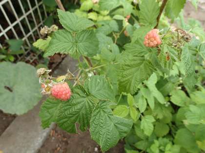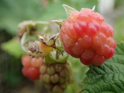 八幡ファームは、今、様々な実がなっています。その中でも注目はラズベリー。酸味のきいた甘いツブツブが人気ですが、ジャムにしても美味です。ただ、トゲがあるので、ブラックベリーの方が安全。垣根にブラックベリーを這わせてみることも考えています。