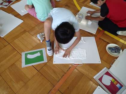 今日は世田谷美術館から指導員の方が来られて、4年生の美術鑑賞教室の事前授業を行いました。お話だけではなく、実際に紙粘土を使いながら写真の見本を見ながら造形を試みました。なかなかおもしろい作品ができていました。