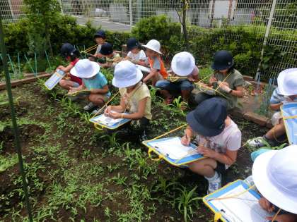 「くきの根元が色がちがうよ」とたくさんの発見をすることができました。