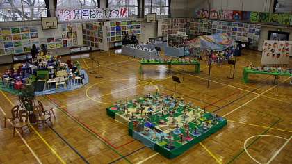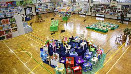 10日(水)、平成21年度創立130周年記念展覧会が始まりました。今日と明日11日(木)です。明日は建国記念の日で祝日ですが、本校では4時間目まで授業を行い下校となります。ます。その後午後4時まで鑑賞が可能です。ご家族皆様おそろいでお出かけ下さい。会場にはストーブを3台設置しておりますが、冷え込むことが予想されますので、防寒対策をしておいで下さい。午前中は児童の鑑賞も設定されおります。混み合うことも考えられますがご容赦ください。ご来校の際は受付にご記名いただき、保護者の方は「保護者証」を、それ以外の方は受付で「入校証」を受け取りご参観下さい。また、学校公開期間中でもございますので、授業も遠慮無くご覧ください。