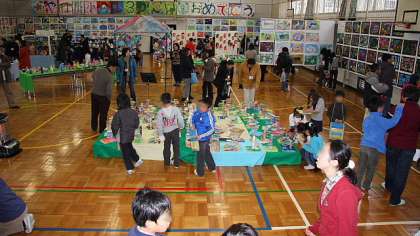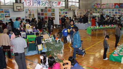 11日(木)建国記念の日、今日の展覧会は休みの日とあって、多くの家族や地域の皆さんにおいでいただき、午前中の体育館は人であふれるほどでした。参観ありがとうございました。
